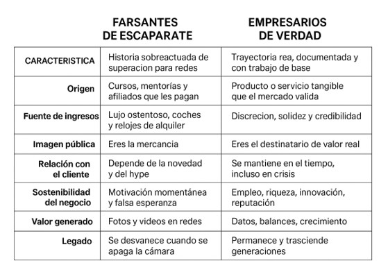 En el mundo real, el éxito no se mide en “likes”, sino en hojas de balance, en nóminas pagadas, en clientes satisfechos y en empresas que sobreviven a las modas. Los empresarios de verdad no te venden la entrada a su club, te venden un producto o servicio que funciona. Los otros… te venden la entrada a su teatrillo.